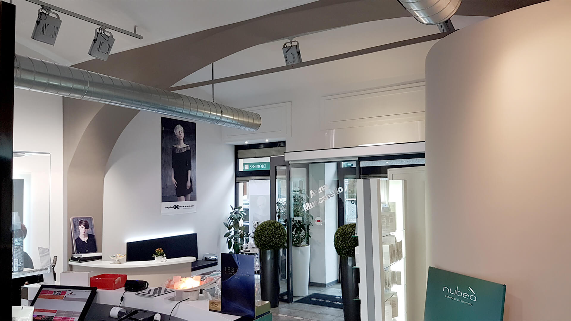 La ristrutturazione interna di questa attività si articola con una razionalizzazione rigorosa degli spazi di lavoro nel rispetto della struttura originale. Le forme sinuose, vecchie e nuove, collaborano alla costruzione di uno spazio accogliente e confortevole.